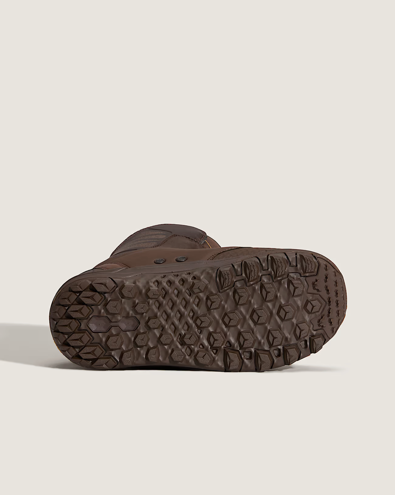 - La suela V3 Superenduro Waffle se inspira en las carreras de resistencia de motociclismo, con un diseño de banda de rodadura multidireccional, texturizado superficial y una puntera de TPU para mayor tracción y agarre en la nieve.