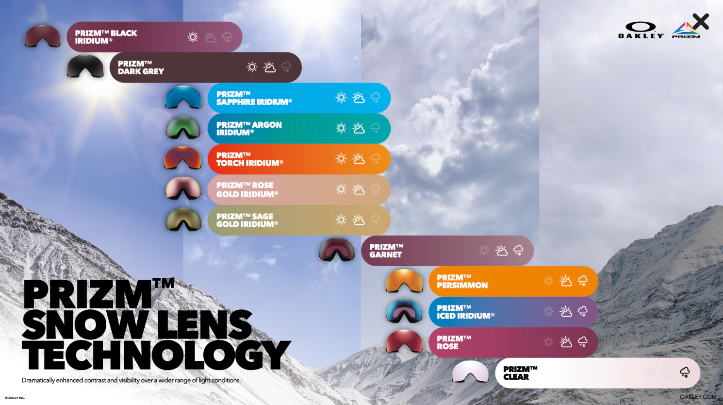 Todas las lentes Flow Scape cuentan con la tecnología óptica Prizm™ Snow, diseñada para ajustar el contraste y ayudar a ver más detalles en la nieve, el sol y la sombra.
