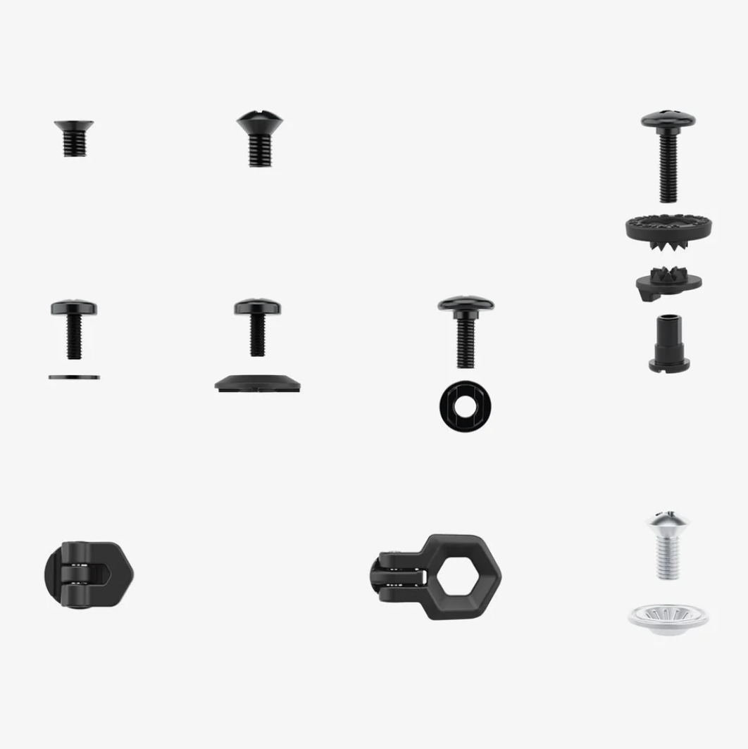 Un kit completo de tornillos para todos los modelos de fijaciones Union. Guárdelo en su automóvil o mochila para reparaciones rápidas.
